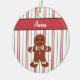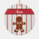 Peppermint stripes and a gingerbread man decorate this Christmas ornament! Customize this ornament by changing the name. Use this cute gingerbread ornament as a gift, Christmas tree decoration, decor, etc....The designs are from original art.