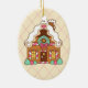 A festive gingerbread house decorates this cute custom Christmas ornament. Personalize this gingerbread house ornament by changing the text. The design is from original art.