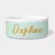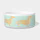 Cute cream gingham dachshunds circle this mint green pet bowl. Add your little sausage dog's name in a script font on the center of the bowl. Match your dog's dinnerware to your farmhouse kitchen. This classic pattern and color scheme is also great for preppy pup parents and cottagecore aesthetics.