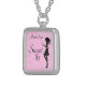 Personalized Silhouette Girl and Hearts Pink and Black Sweet Sixteen Necklace
