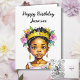 Pretty little girl of color Princess personalized Birthday card. Inside page is a coloring page. Add child's name in personalize area.