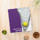 Creative school binder, memory book or scrapbook photo album for featuring lax stick design on purple background. Edit text to add girls or women's lacrosse player or coach's name and the year.