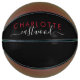 Personalized girls monogrammed basketball with a red first name and trendy script style typography name on a black background. Click on "customize further" to use the simple design tool if you want to change the background color or fonts. If you need help with this please contact me by click on the "message" link in my shop.