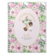 Personalized First Holy Communion gift for girls featuring a young girl in her first communion dress with a Bible and Rosary beads. There are three text fields for you to add your own commemorative text. This is a lovely gift from Parents, Godparents, Grandparent, Godmother or Godfather. Gift to daughter, granddaughter, Goddaughter on her first Holy Communion as a treasured keepsake. This gift is available with a range of caricatures featuring girls with different hair colors and skin tones. Access the full collection to see them all. This gift can be used as a journal, Prayer Journal, Bible Study notes book, gratitude journal and more.
