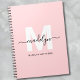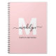 Personalized Elegant Modern Blush Pink Script Name Initial Monogram Spiral Notebook. This simple and girly notebook features a soft blush pink background with a clean white initial that pairs beautifully with a hand-lettered black script name. Below the initial, the full first and last name is printed in a sleek, modern font, creating a polished and feminine look.