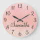 Personalized Girly Faux Pearly Peach Pink Foil Large Clock