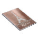 This fabulous spiral notebook features diamond Eiffel Tower on a rose gold brushed metal background with sparkling diamonds underneath. Personalize with your name. Perfect for jotting down those notes and ideas! Note: the diamonds are simulated in the design and are not real.