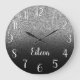 Personalized Girly Silver Glitter Black Ombre Large Clock