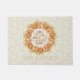 Add your family name to this Door mat with “Give Thanks with a Grateful Heart” in a handwritten font, surrounded by a autumn leave and pumpkin wreath. Background has a subtle leaf and acorn pattern.