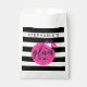 Add your favorite goodies to this chic personalized signature black-and-white stripe favor bag for guests or friends. Perfect for birthdays, bridal showers or girl's night out.