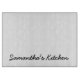 Personalized glass cutting board with custom text, name or monogram. Cute gift idea for kitchen or restuarant.