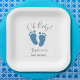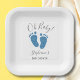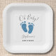Personalized Glitter Feet Blue Baby Shower Square Paper Plates