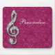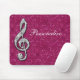 Elegant, glamorous girly personalised Mousepad. Beautiful, dazzling trendy printed image silver and diamonds bling jewels musical note on a chic hot pink sparkly glitter printed image background. A cute, classy, fashionable, stylish, pretty gift for her or any music lover.