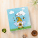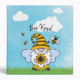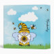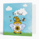A cute gnome holding a sunflower, a bee and the saying "Bee Kind"