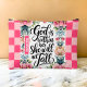 God is Within Her : Psalm 46:5 Christian Accessory Pouch . A watercolor floral border in soft pinks and purples surrounds elegant gold script that reads “God Is Within Her, She Will Not Fall". personalized with name.