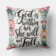 God is Within Her : Psalm 46:5 Christian throw pillow . A watercolor floral border in soft pinks and purples surrounds elegant gold script that reads “God Is Within Her, She Will Not Fall". personalized with name.