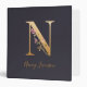 Personalized Gold Blue Elegant Floral Monogram N 3 Ring Binder
