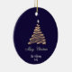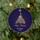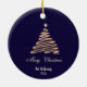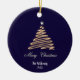 Simple gold Christmas tree with Merry Christmas. The Christmas tree is a line drawing with a star at top. This ornament can be personalized with the name and year.