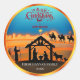 Add a touch of sacred beauty to your holiday gifts and greetings with this exquisite Nativity scene Christmas sticker, a unique design by you! This round sticker features a serene silhouette Nativity depicting Mary, Joseph, and baby Jesus in the manger, accompanied by a shepherd, donkey, and sheep. In the background, the Three Wise Men journey towards the Star of Bethlehem under a captivating blue and golden gradient sky, with a subtle cityscape silhouette on the horizon.