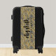 A gold tropical palm tree frond design, this suitcase is personalized with your first and last name in a chic handwritten script. Choose the color of your suitcase shell, the handle, wheel covers and bumpers. The perfect personal gift or accessory for any occasion! MATCHING luggage tag and more in our collection.