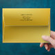 Gold return address envelope featuring your name and address details in a chic text. Designed by Thisisnotme©