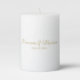 Personalized gold script calligraphy custom names and date elegant chic Wedding Pillar Candle.