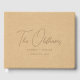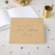 Elegant classic gold serif typography on a fawn cream background. Cherish the comments and sentiments from friends and family, preserved in your beautifully crafted wedding guest book. Simple elegance.