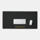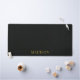 Personalized solid black desk mat with your name in a simple serif gold typeface. Simple minimalist modern typography. Perfect for home or office workplace.