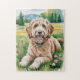 Unleash your inner puzzle enthusiast with our Personalized Goldendoodle Jigsaw Puzzle! This puzzle features an adorable goldendoodle dog laying in a field of flowers. The field is surrounded by trees and mountains. This jigsaw puzzle is in a watercolor style. Whether you're unwinding after a long day or looking for a fun activity with friends and family, this Goldendoodle Jigsaw Puzzle offers hours of engaging entertainment. Dive into the world of puzzles and let the adorable charm of the goldendoodle brighten your day!