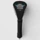 Perfect for dads, grads, retirees or anyone who loves golf, this personalized driver cover in crisp black and vibrant turquoise features a golf ball logo that can be customized with his name for a cool custom look.