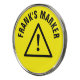 Personalized golf ball markers with yellow caution sign triangle. Custom equipment for golfers. Fun golfer gift ideas for him or her. Personalizae with name, company slogan, funny quote or monogram initial letter. Cool golfing presents for men and women. Make your own one of kind marker coins for dad, uncle, husband, brother, grandpa, father, wife, mom, friend, coach, instructor, caddie, golf buddy, business partner etc.
