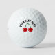 Custom golf balls with red cherry fruit logo. Add a personalized name or quote. Unique golf ball set gift for men and women. Cool sports gift for retiring friends and family. Add your own funny quote or monogram initial letters. Also available on other high quality golfing brands. Fun presents for avid golfer, golf buddy, retired dad, pensioner, retiring husband, retiree, boyfriend, boss, colleague, coworker, wife, mom, caddie master, coach, trainer, best friend, fan, enthusiast etc. Make your golf balls uniquely identifiable with your personal mark or logo. Upload your image optionally. Also fun for Birthday or Christmas.