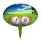 Personalized custom golf theme wedding cake toppers with name initials and love hearts design.