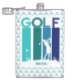 A woman golfer swings her club and hits her golf ball 250 yards down the fairway toward a difficult par 5 green. A chip and a putt and she is in for a birdie! Personalize this flask: add your name, or country club name, location, and date to make this flask extra special and help inspire your golf game! Makes a great new member gift, or golf event souvenir.