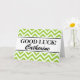 Personalized good luck cards with chevron pattern Green greeting card with custom name and wishes. Surprise friends and family with this customizable design. Editable colors.
