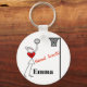 Netball themed design key ring with personalized name option and good luck text. Netball player and coach gift ideas.
