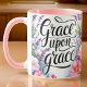 Watercolor flowers in shades of lavender and pink, with the words "Grace Upon Grace" written in flowing, elegant bold calligraphy style typography. Personalized with name.