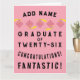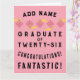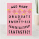 Unique graduation card featuring class of 26 design and motivational rhyme on pink background. To personalize edit text to add name of senior grad.