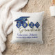 Give your grad a special commemorative gift with this personalized blue and gold graduate throw pillow with cap, graduating year, name and school. Back features blue brushed metal background. Easy to personalize with custom options. Use the 'Personalize' button to customize the product, or add text.