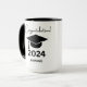 Introducing our customizable white coffee mug, adorned with a personalized graduation cap design, complete with the graduate's name and graduation year. This ceramic mug is ideal for commemorating academic achievements and makes for a thoughtful gift. Perfect for savoring coffee, tea, or any preferred beverage while reflecting on the graduate's journey. Cherish this keepsake for years to come.