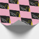 Creative pink graduation gift wrap or grad party decoration featuring a black cap with a gold tassel. Edit text to add name of your favorite high school or college graduate.