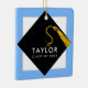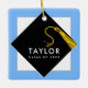 Grad keepsake gift featuring black graduation cap and gold tassel on light blue background. To personalize edit text to add graduate's name and the senior class year.