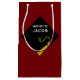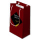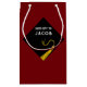 Creative graduation gift bag featuring black and gold cap design on a maroon background. To personalize edit text to add grad's name.
