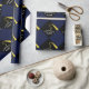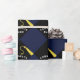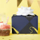 Creative graduation gift wrap or grad party decoration featuring black graduation cap with gold tassel on navy blue background for graduate's gift or his or her party decor. To personalize, edit text to add name of grad.