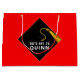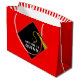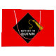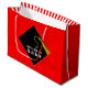 Unique graduation gift bag featuring creative classic black and gold cap on a red background. Edit text to add senior grad's name.
