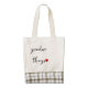 The plaid bottom caught my eye. The ability to personalize it in my own way -- font size, color, further appealed. My wife likes it a lot. The printing is fine, like the bag was created that way.
