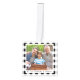 This Christmas cube ornament is great for adding a customized decoration to your tree. The text "we love you grandma and grandpa" can be customized with any message you'd like. Make it for grandparents first Christmas as grandma and grandpa. It features four sides, that you can add your family photos to and it can also be personalized with a message that fits the message. On top of the ornament is Merry Christmas in a fun font, and the background features a black and white plaid pattern.