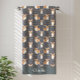This corgi beach towel design is complete with a seamless pattern of cute corgis as well as a gray background color and a place to add your name.
