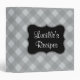 A gray gingham pattern decorates this vintage style recipe binder. Personalize this binder by changing the text. Organize your favorite recipes in this empty binder. The design is from original art.