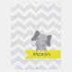 A modern gray yellow chevron pattern and a cute elephant illustration is featured on this fleece baby blanket. Easily personalize with a child's name. Perfect for a baby boy or toddler boy to cuddle with.